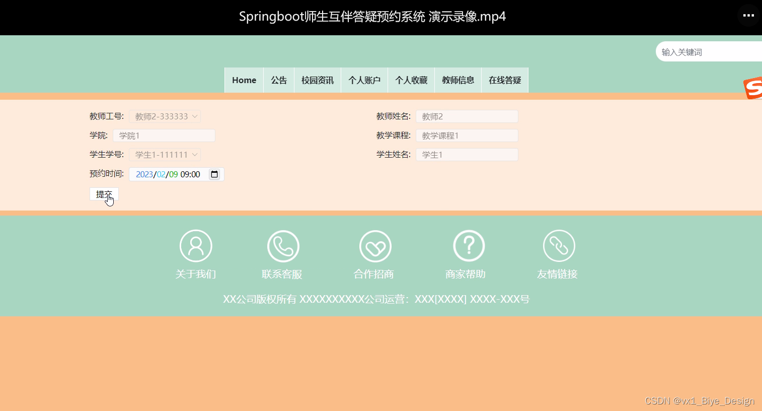Key words: teachers and students accompany each other to answer questions and make appointments; Java language; Relational database; data storage