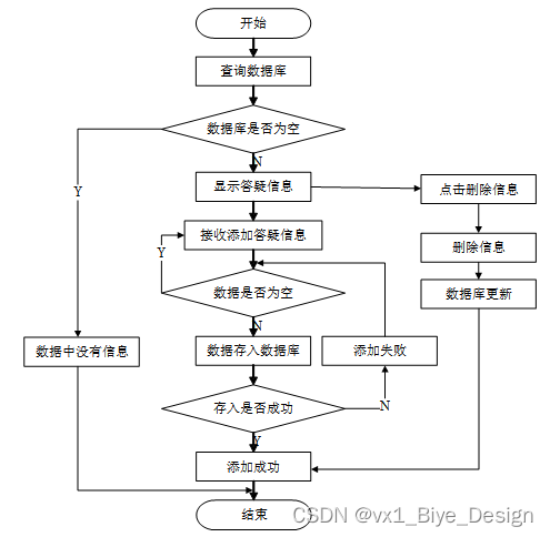 学生和课程存在提问关系,关系为一对多,根据课程编号来将课程数据传入到提问数据中,操作人为学生,然后生成提问列表,学生查看个人历史提问列表,可以进行数据销毁。