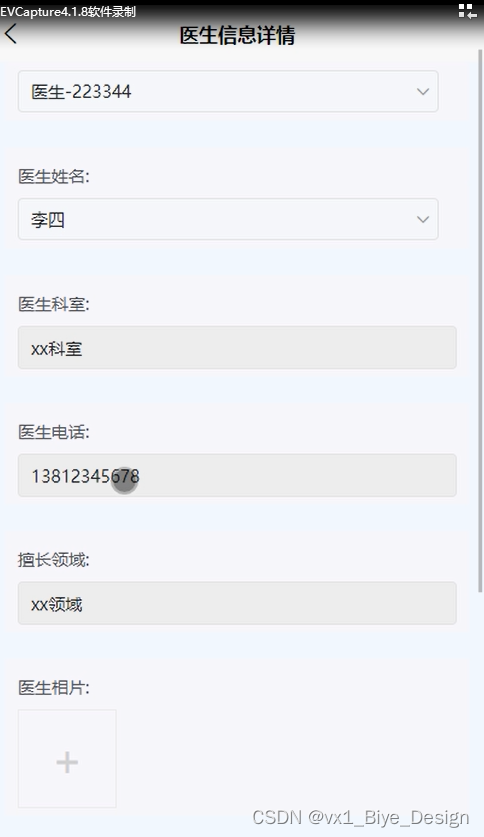 医生用户可以管理医生的个人信息、擅长领域、门诊时间等内容,界面如4-7所示。