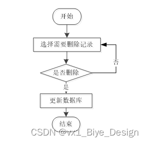 用户可选择要删除的信息进行信息删除操作,在删除信息时系统提示是否确定删除信息,是则删除信息成功,系统数据库将信息进行删除。删除信息流程图如图2-7所示。