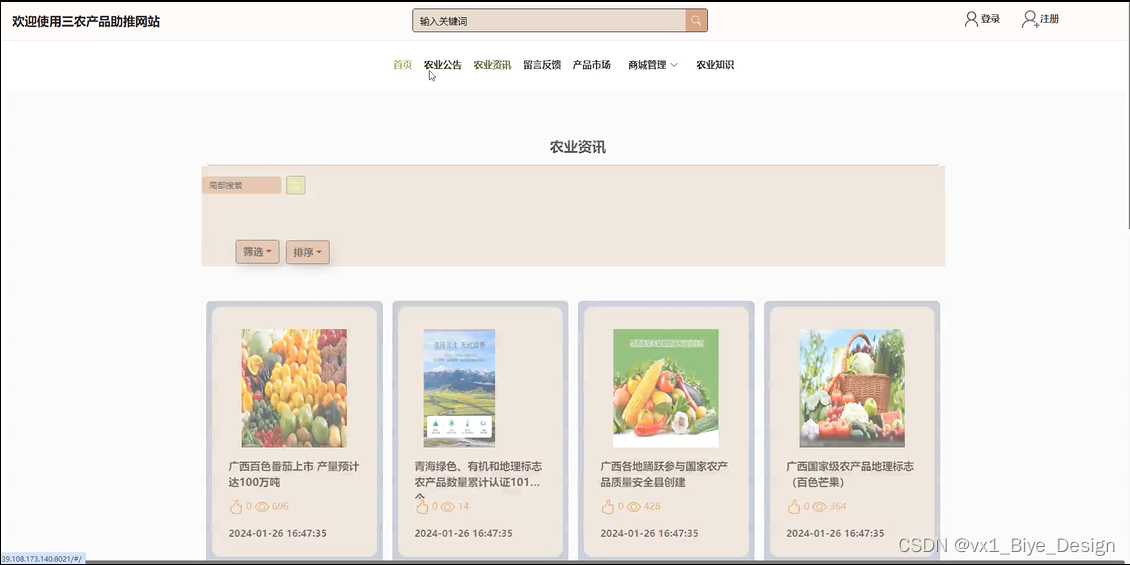 农业资讯: 展示农业领域的新闻和资讯内容,方便用户了解行业动态。