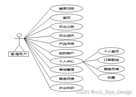 按照基于SSM的三农产品助推网站的角色,网站划分为了普通用户模块和管理员模块这两大部分。在设计和实现基于Spring Boot的三农产品助推网站时,我们需要充分考虑普通用户和管理员的不同需求,以确保网站能够满足各类用户的功能要求。以下是针对不同用户角色的功能分析: