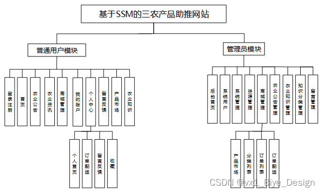 以上是基于SSM的三农产品助推网站的功能需求分析,涵盖了普通用户、管理员两个角色的功能需求,设计与实现相应的功能模块,以提供用户便利的浏览体验和管理员有效的系统管理。