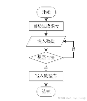 用户成功登入系统后就能够实现增加数据的操作,增加数据的编号是特定的,系统生成,用户不能随意填写,除了编号以外,其他增加信息用户自己填写,填写后的信息经过系统验证,验证合法通过就显示增加数据成功了,相反的话,就没有增加成功,图2-1显示的就是在增加数据时的流程。