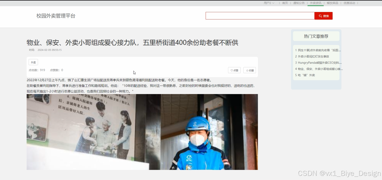 (3)外卖资讯:用户进行资讯的阅览,查看管理者发布的外卖资讯信息。