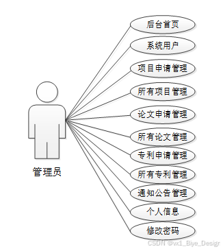 通过2.3功能的分析,得出了本高校科研成果管理系统的用例图: