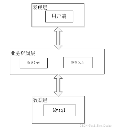 数据层(DL):由于本高校科研成果管理系统的数据是放在服务端的MySQL数据库中,因此本属于服务层的部分可以直接整合在业务逻辑层中,所以数据层中只有数据库,其主要完成本高校科研成果管理系统的数据存储和管理功能。