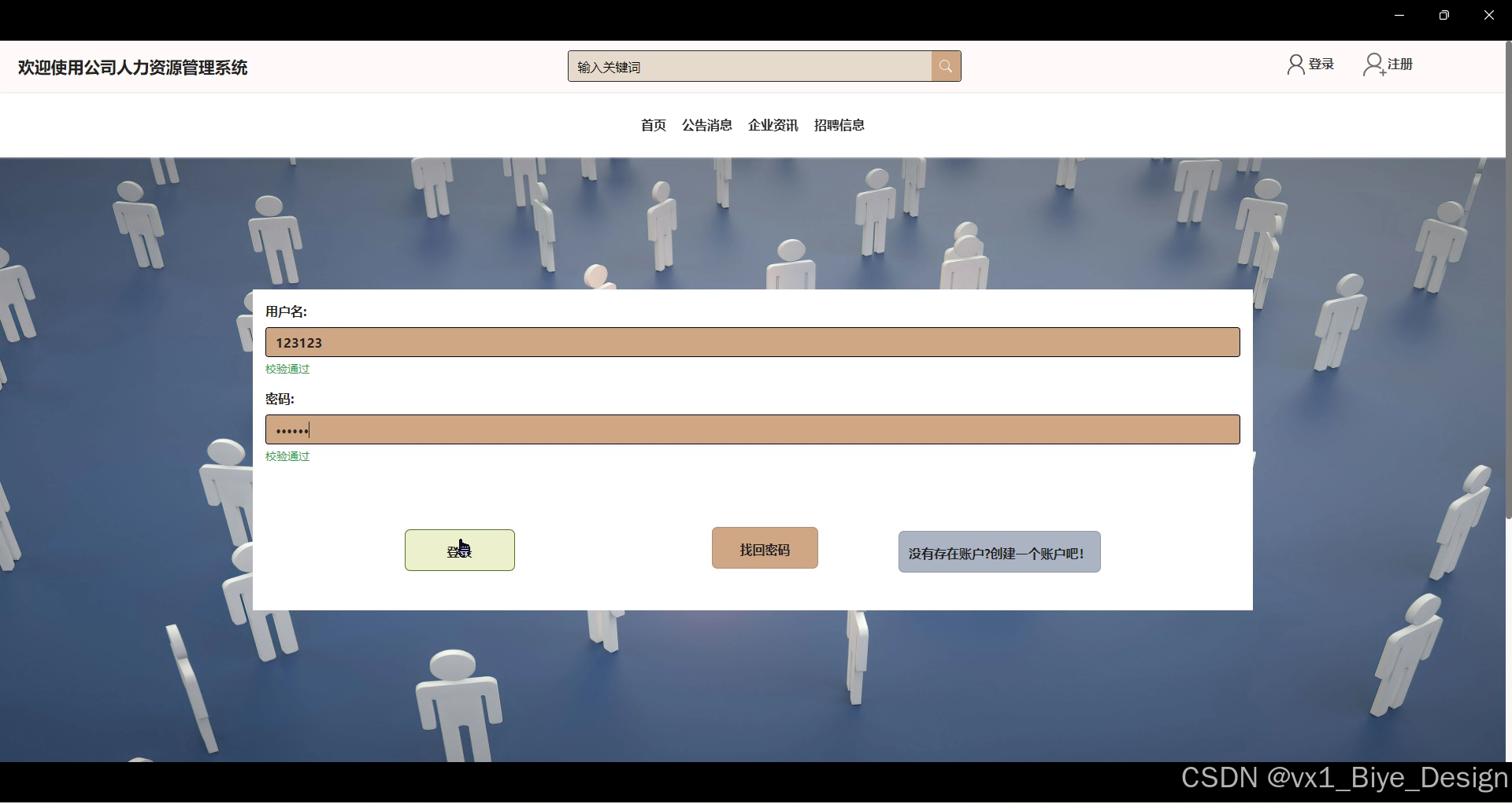 系统测试包括:用户注册、用户登录、招聘信息查看、面试安排、员工请假等,如表5-1、5-2、5-3、5-4、5-5所示: