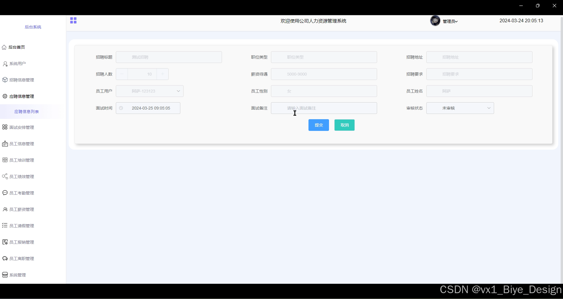 - 应聘信息管理:管理员可管理员工的应聘记录和面试安排,协调应聘流程和人才选拔。