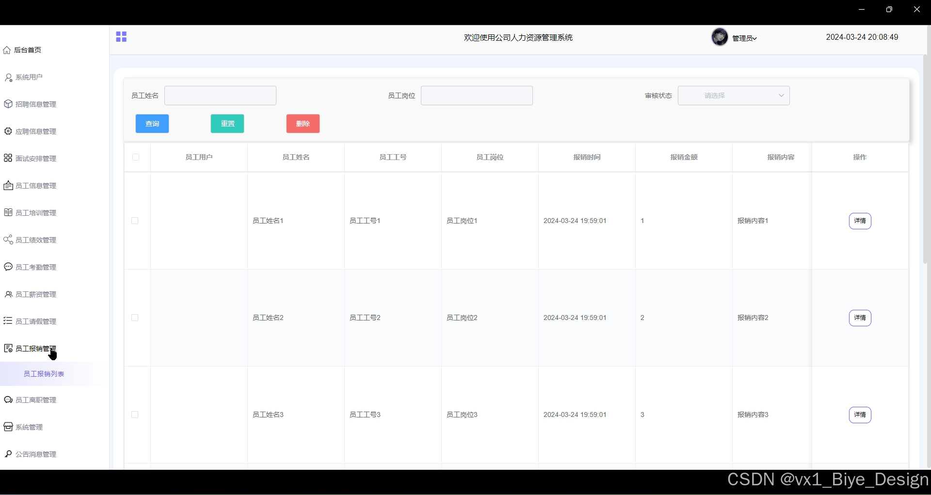 - 员工报销管理:管理员可审核员工报销申请和记录报销流程,管理费用开支和报销凭证。