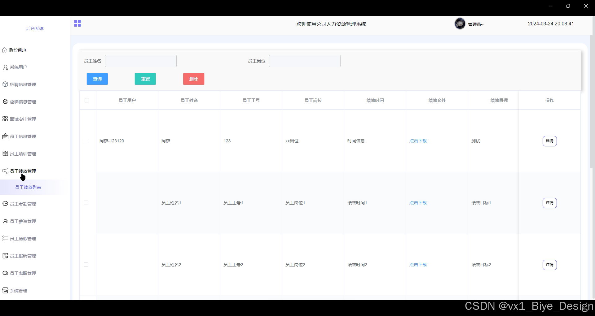 - 员工绩效管理:管理员可评定员工绩效和制定绩效考核标准,激励员工表现和提升工作效率。