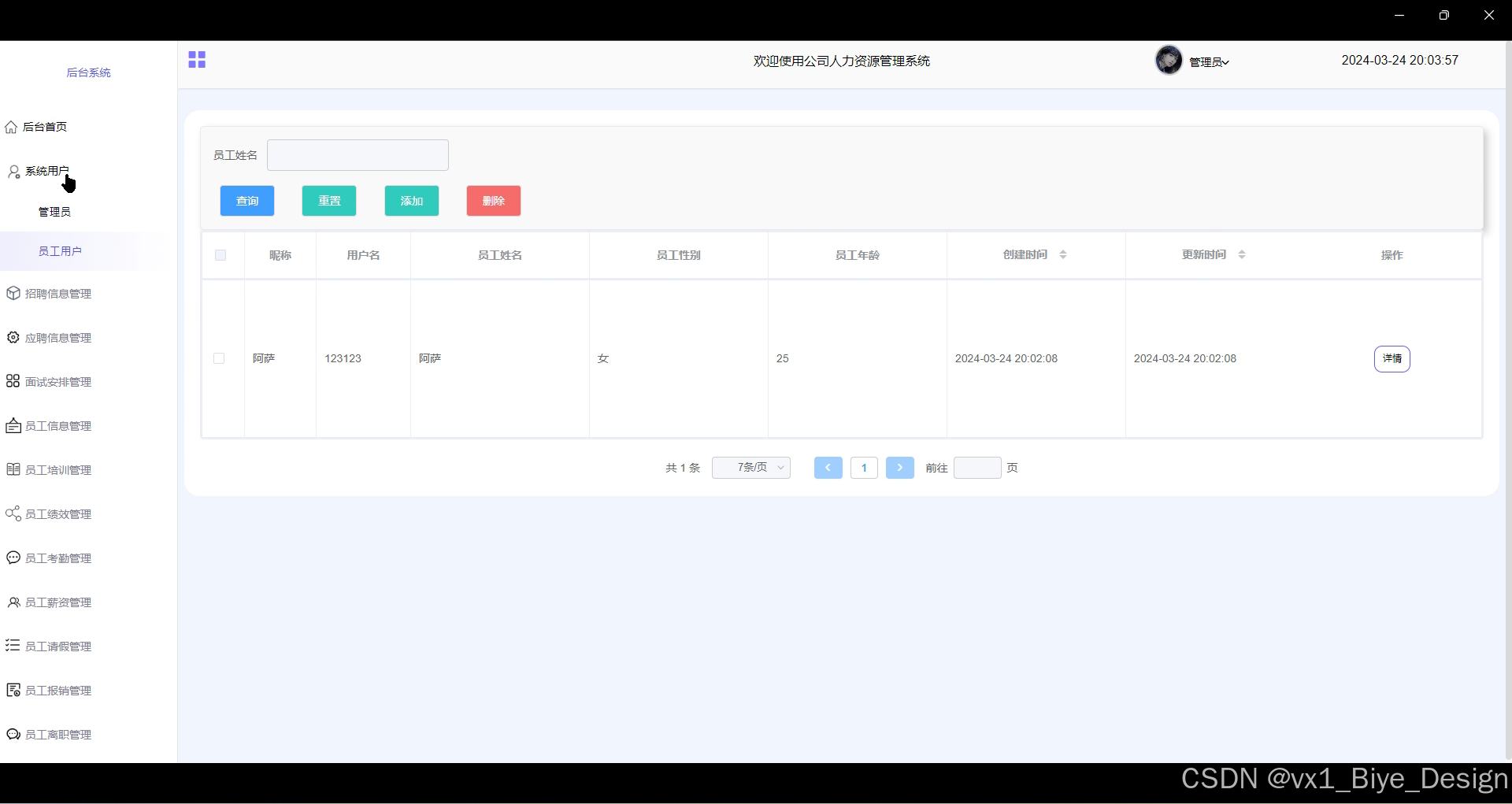 - 系统用户管理:管理员可以管理系统用户,包括管理员和员工用户的账户信息,维护系统用户数据和权限管理。
