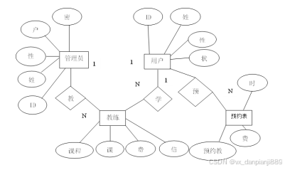 实体-关系(Entity-Relationship,E-R)图是数据库设计中常用的一种建模工具,需要考虑到实体之间的关系类型(一对一、一对多、多对多)、主键与外键的设置、实体属性的完整性约束等因素,以确保数据库设计的规范性和有效性。综上所述,E-R图设计是健身房管理系统数据库设计的重要步骤之一,通过合理的E-R图设计,可以为数据库的实现提供清晰的指导,有助于系统的高效运行和管理。