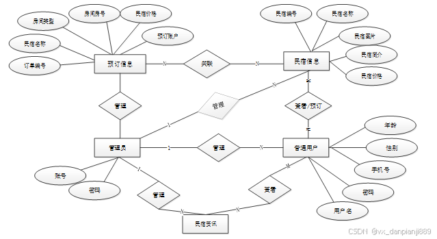 下面是整个民宿预订管理系统小程序中主要的数据库表总E-R实体关系图。