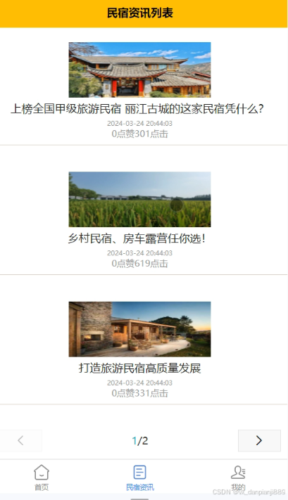 民宿资讯:民宿资讯板块提供了丰富的行业动态和新闻信息,用户可以阅读并了解最新的民宿发展动态。对于感兴趣的资讯,用户可以点赞和收藏,方便日后查阅。此外,用户还可以在资讯下方发表评论,与其他用户交流看法和心得。民宿资讯界面如下图所示:
