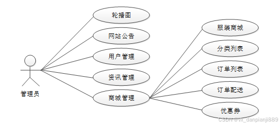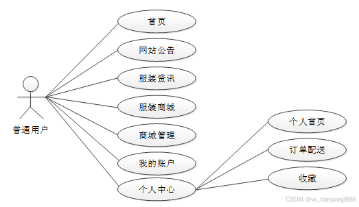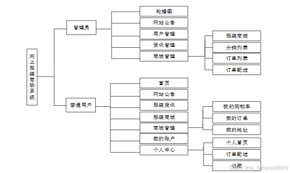 网上服装商场系统我划分为了普通用户模块和管理员模块这两大部分。