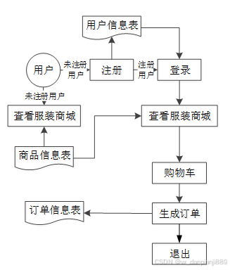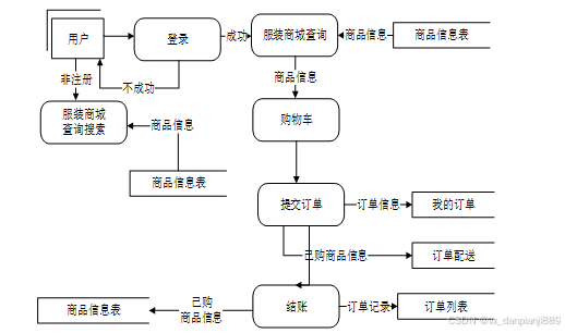 分析完网上服装商场系统的数据流,接下来我们来看系统的业务流程,图3-4就是业务流程图: