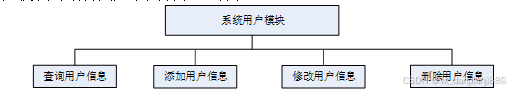 系统用户模块是系统中一个重要的功能模块,它涉及用户的注册、登录、个人信息管理等操作。在用户模块设计中,我们将定义用户数据的结构和属性,包括用户名、密码、邮箱等。同时,还需要实现用户注册、登录、修改密码等功能,并对用户输入进行验证和处理。用户模块的结构图如下图所示3-2所示:
