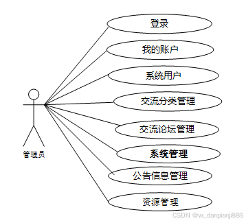 - 交流分类管理:管理员可以对交流分类列表和分类添加进行管理,包括添加、修改、删除交流论坛资源交流信息。