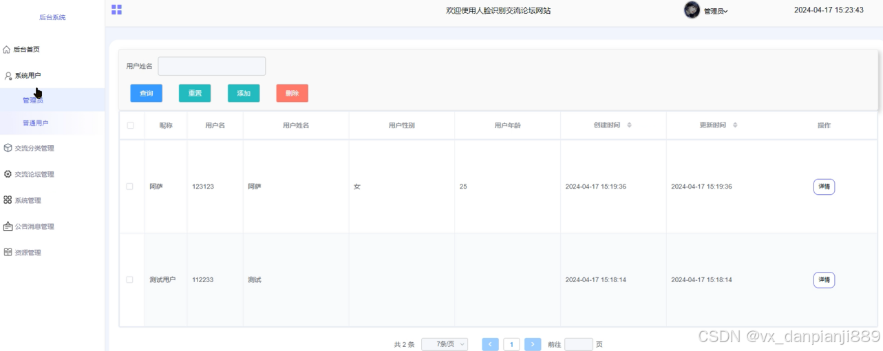 springboot人脸识别交流论坛网站系统分为两大部分:管理员模块、普通用户模块。