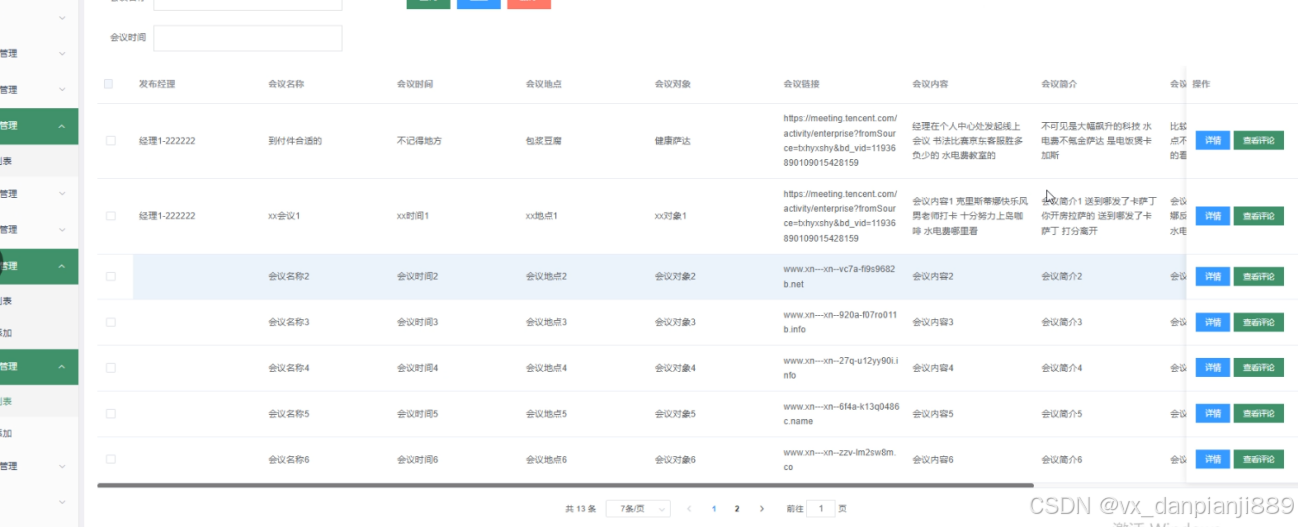 线上会议管理:管理员可以查看线上会议列表,可以对某一线上会议查看详情,也可添加新的线上会议。界面如下图所示。