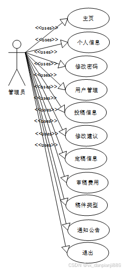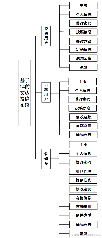 文达投稿系统总体分为投稿用户模块、审稿用户模块和管理员模块。