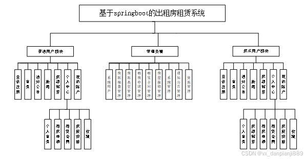 在系统开发设计前,应该对功能做初步设想,清楚这个管理系统有什么板块,每个板块有什么功能,整体的设计是否满足使用者的需求,接着对所开发的系统功能进行的详细分析总结,从而设计出完整的系统并将其实现。管理员、房东用户、普通用户的交流分析,使其达到最佳理解程度,使系统功能达到最佳。