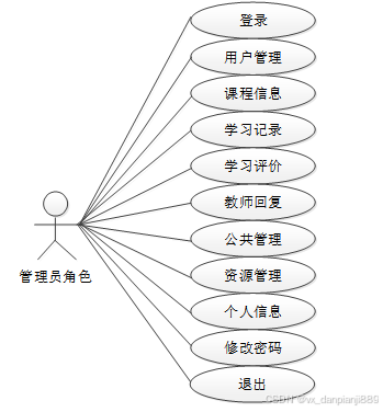 本系统的用户包括管理员、学生、教师三种模块的功能基本是相同的,用户比管理员多了一个注册功能,所以以用户模块的结构图为例进行分析,用户模块结构图为例进行分析,如下图: