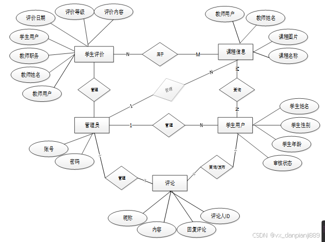高校学生评教系统是一个公开平台,用户在平台上评价,但是同时也为了更好的规范评价的内容,给予管理员删除不合适的评价的功能,所以需要专门设计一个评价管理模块,具体的结构图如下: