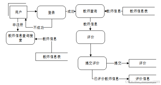 开发高校学生评教系统最主要的一个目的就是实现用户对教师的评价,图2-4就是系统的数据流图。