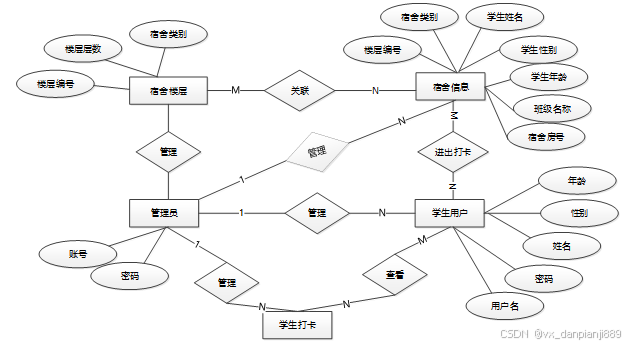(2)功能模块设计:确定系统的具体功能模块,包括系统用户、宿舍楼层管理、宿舍信息管理、学生打卡管理、考勤打卡管理等功能。