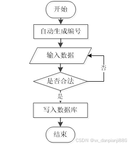 用户成功登入系统后就能够实现增加数据的操作,增加数据的编号是特定的,系统生成,用户不能随意填写,除了编号以外,其他增加信息用户自己填写,填写后的信息经过系统验证,验证合法通过就显示增加数据成功了,相反的话,就没有增加成功,图3-4显示的就是在增加数据时的流程。