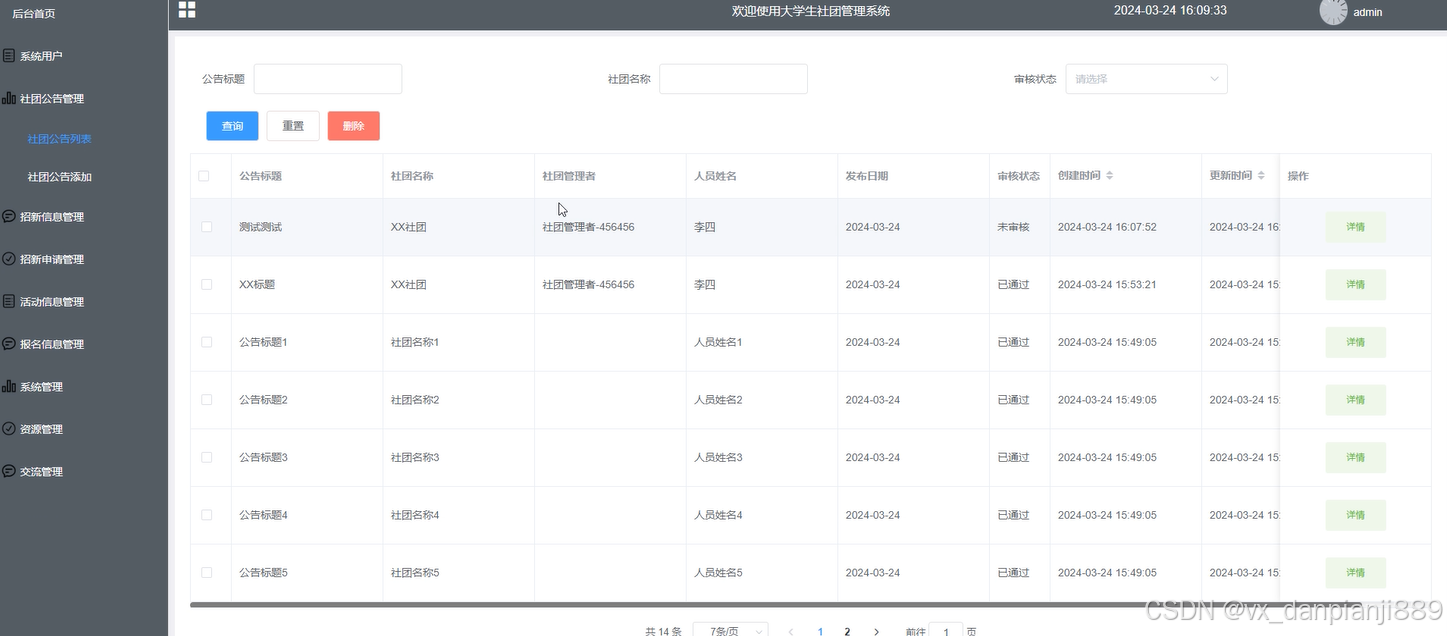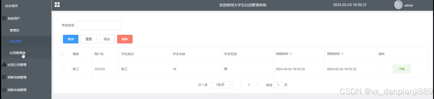 In today's increasingly mature computer science and technology, people have deeply realized the enormous role that computers play in various fields. They have been widely applied in various fields of human society and play a crucial role. The management of school student clubs is a systematic and complex task that requires mutual cooperation and clear division of labor among various groups. Traditional manual access or the use of software for information management in student clubs often fail to track and manage various types of information in real-time. In order to further improve the management process and unified management resources of the university's student club, and provide more comprehensive and efficient software development process management services, the university student club management system has been developed.