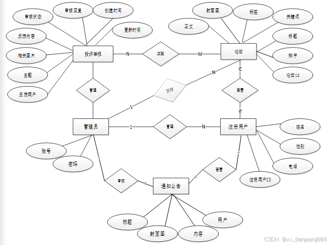 下面是整个基于Android的校园信息论坛设计与开发中主要的数据库表总E-R实体关系图。
