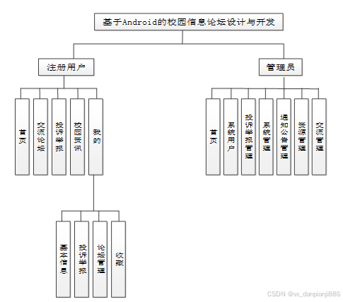基于Android的校园信息论坛设计与开发划分为了,注册用户和管理员这两大部分。