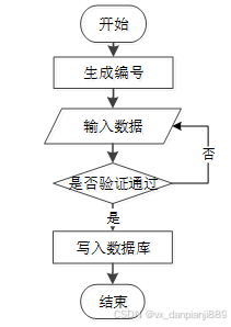 用户成功登入系统后就能够实现增加数据的操作,增加数据的编号由系统生成,用户不能随意填写,除了编号以外,其他增加信息用户自己填写,填写后的信息经过系统验证,验证通过后即可完成数据新增,数据新增的流程图如下图2-3所示。