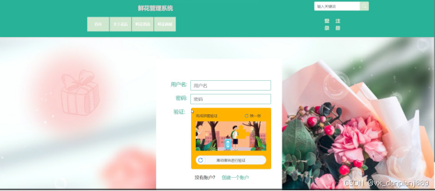 鲜花管理系统中的前台上注册后的用户是可以通过自己的账户名和密码进行登录的,当用户输入完整的自己的账户名和密码信息并点击“登录”按钮后,将会首先验证输入的有没有空数据,再次验证输入的账户名+密码和数据库中当前保存的用户信息是否一致,只有在一致后将会登录成功并自动跳转到鲜花管理系统的首页中;否则将会提示相应错误信息,用户登录界面如下图4-3所示。