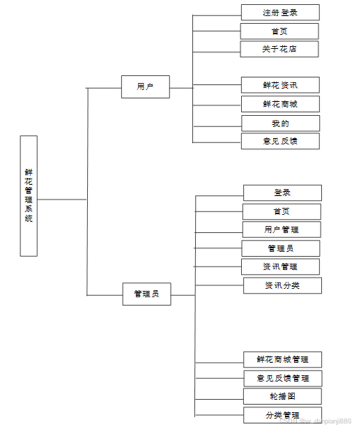 按照鲜花管理系统的角色,我划分为了注册用户模块和管理员模块这两大部分。