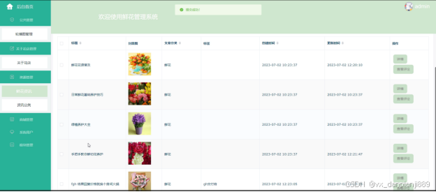 (4)资讯管理:管理员可以对鲜花资讯进行进行增删改查。
