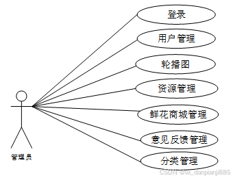通过2.3功能的分析,得出了本鲜花管理系统的用例图: