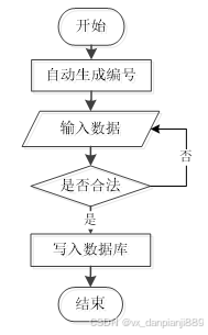 用户成功登入系统后就能够实现增加数据的操作,增加数据的编号是特定的,系统生成,用户不能随意填写,除了编号以外,其他增加信息用户自己填写,填写后的信息经过系统验证,验证合法通过就显示增加数据成功了,相反的话,就没有增加成功,图2-1显示的就是在增加数据时的流程。