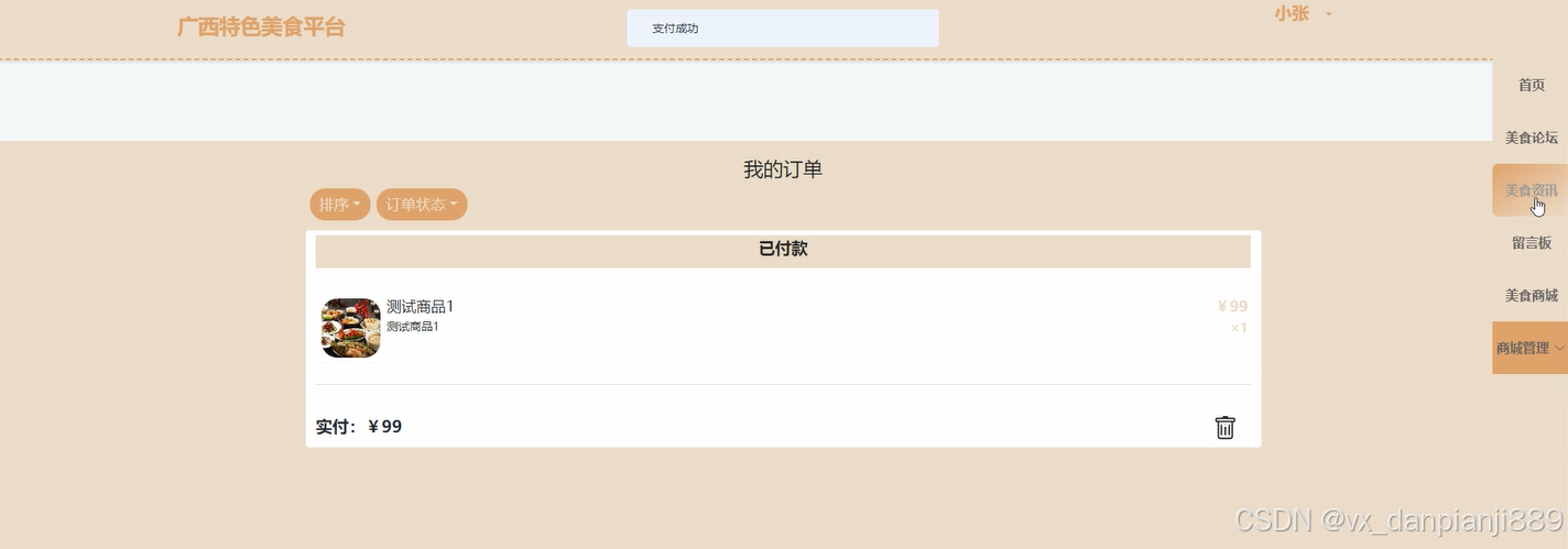 (5)我的订单:用户在提交订单后,可以对提交的订单进行管理。