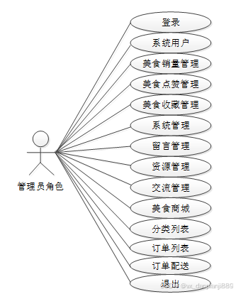 web后台管理上的管理员是维护整个广西特色美食平台中所有数据信息的。管理员角色用例如图2-4所示。
