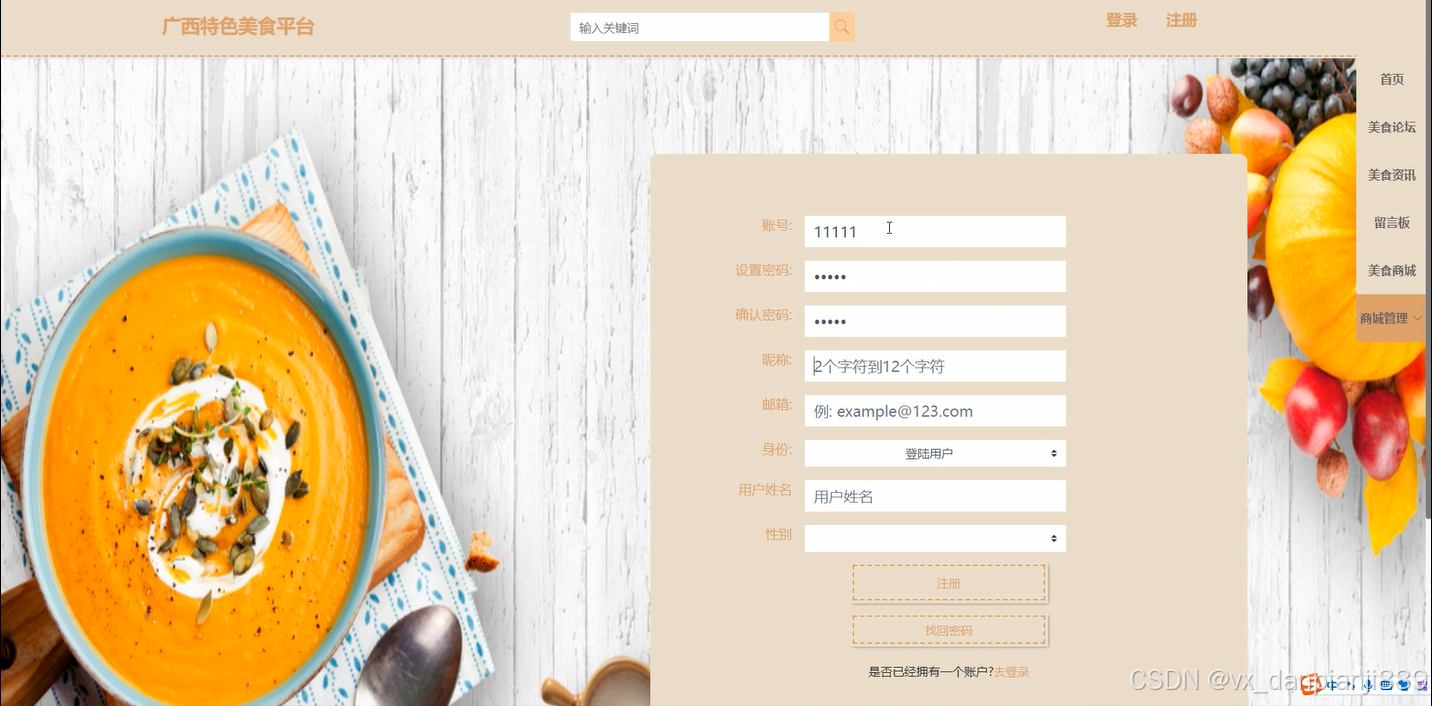 广西特色美食平台的开发及实现,所需要的工作内容: