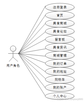 通过2.3功能的分析,得出了本广西特色美食平台的用例图: