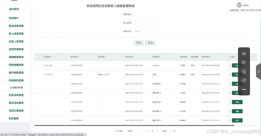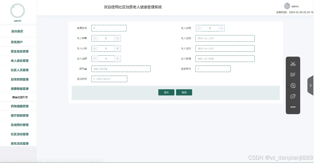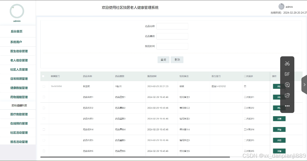 - 操作简单易行,系统界面安全可靠:清晰易懂的页面布局,让您轻松获取有关社区独居老人健康管理系统的所有信息。