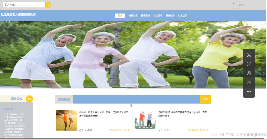 3、该系统具有完善的功能,包括管理首页、个人中心、网站公告、健康资讯、医生信息、社区信息、社区活动等。此外,还提供了维护和更新模块的功能。