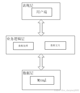 数据层(DL):由于本系统的数据是放在服务端的mysql数据库中,因此本属于服务层的部分可以直接整合在业务逻辑层中,所以数据层中只有数据库,其主要完成本系统的数据存储和管理功能。