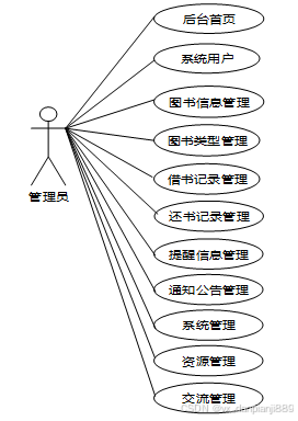 管理员是维护整个基于django的图书借阅管理平台中所有数据信息的。管理员角色用例如图2-4所示。