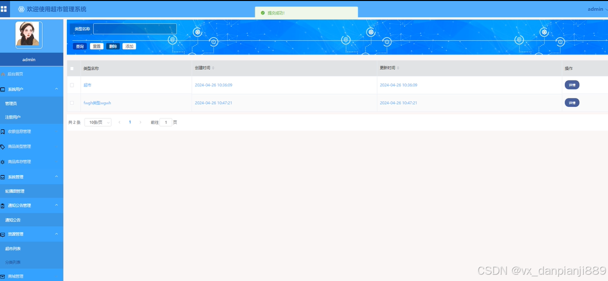 商品类型管理:管理员可以管理超市的商品类型信息,包括添加、编辑、删除商品类型等操作。